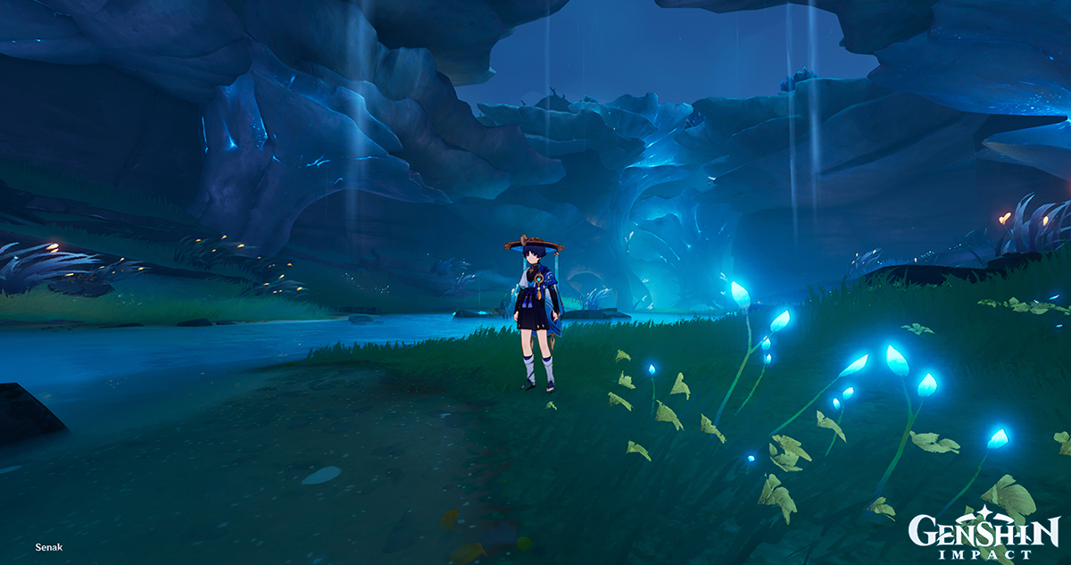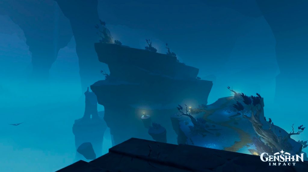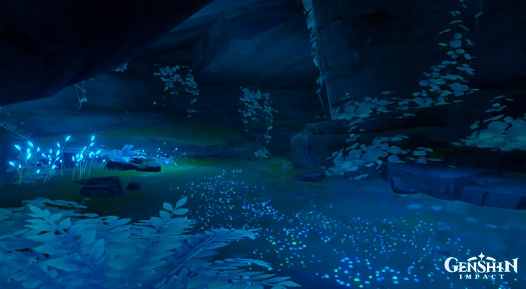 Al atravesar la fosa de Sangonomiya, el Viajero se encontrará en una región rocosa con flora verdosa llamada Entrañas de la Serpiente, la primera zona suberránea en Enkanomiya.
